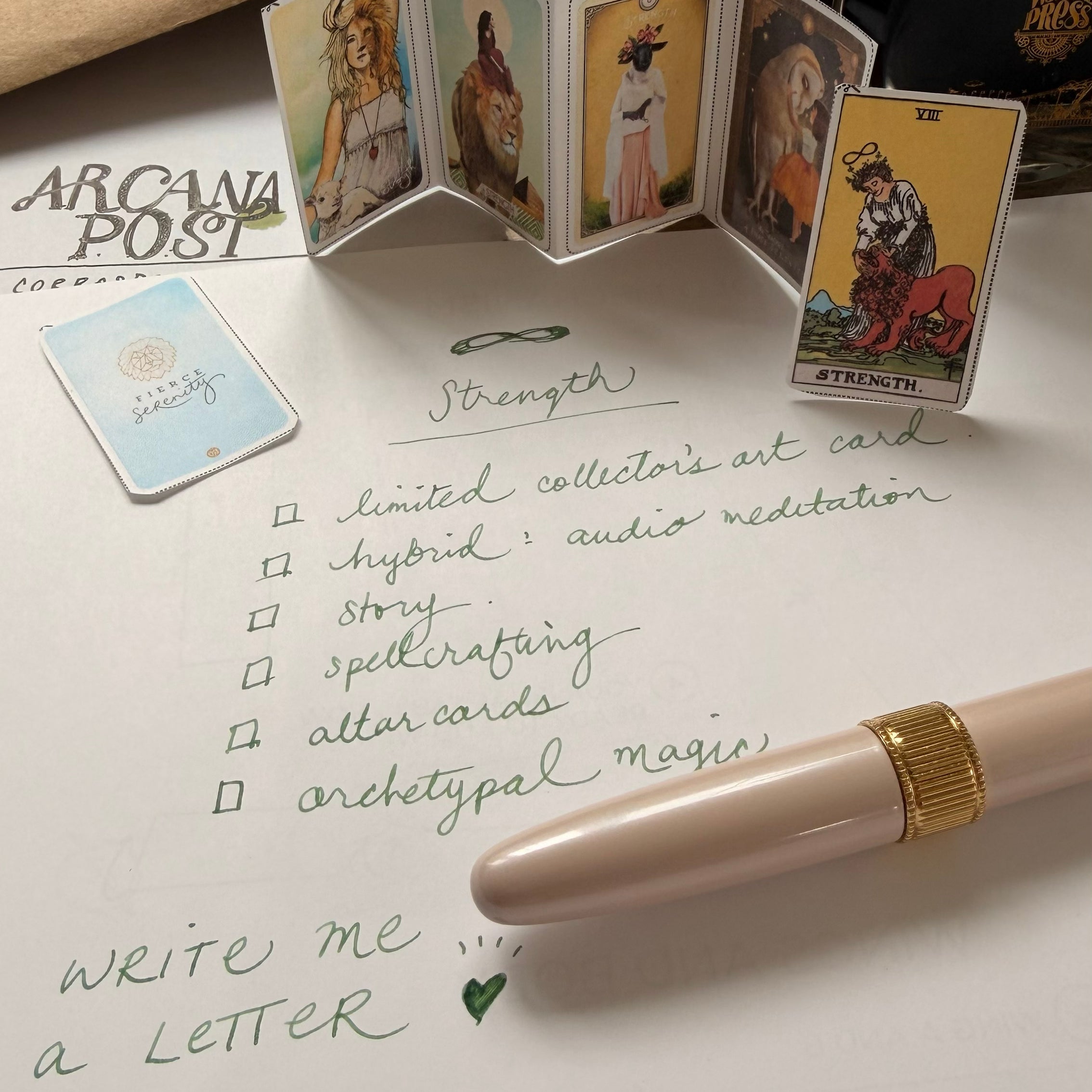 - a limited collector's edition art print of Chris-Anne's new Strength card from an upcoming deck (limited to 108 copies.) The artwork is signed and numbered, printed on vibrant card stock. This advanced copy will be slightly different from the final version that will appear in her future deck.
